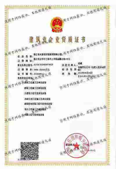 浙江清水建設(shè)安裝集團(tuán)有限公司成立于2013年,注冊資金6688萬元。集團(tuán)具有消防設(shè)施工程專業(yè)承包壹級、城市與道路照明專業(yè)承包壹級、電子與智能化專業(yè)承包壹級、建筑裝飾裝修專業(yè)承包貳級、防水防腐保溫專業(yè)承包貳級、市政工程施工總承包貳級、機(jī)電工程施工總承包貳級、建筑工程施工總承包貳級、電力工程施工總承包貳級、機(jī)電工程專業(yè)承包貳級、環(huán)保工程專業(yè)承包貳級、古建筑工程專業(yè)承包貳級、特種工程結(jié)構(gòu)補(bǔ)強(qiáng)專業(yè)承包、建筑施工勞務(wù)作業(yè)專業(yè)承包(憑建筑業(yè)企業(yè)資質(zhì)證書經(jīng)營
